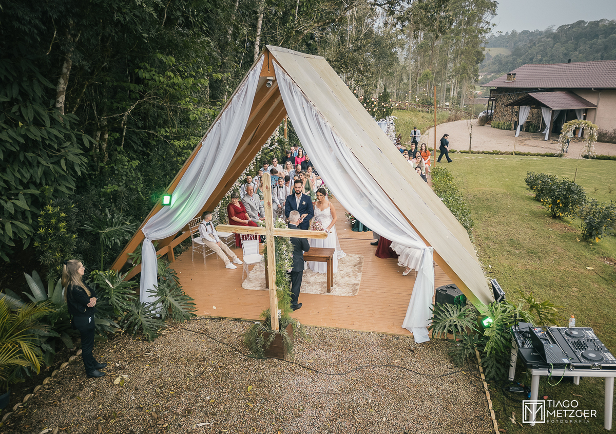 Em um casamento ao ar livre, envolto pela beleza natural que nosso local oferece, eles confiaram na nossa equipe para tornar esse dia inesquecível. Cada detalhe foi cuidadosamente planejado, desde a cerimônia cheia de fé até a recepção calorosa, onde o amor e a emoção tomaram conta.